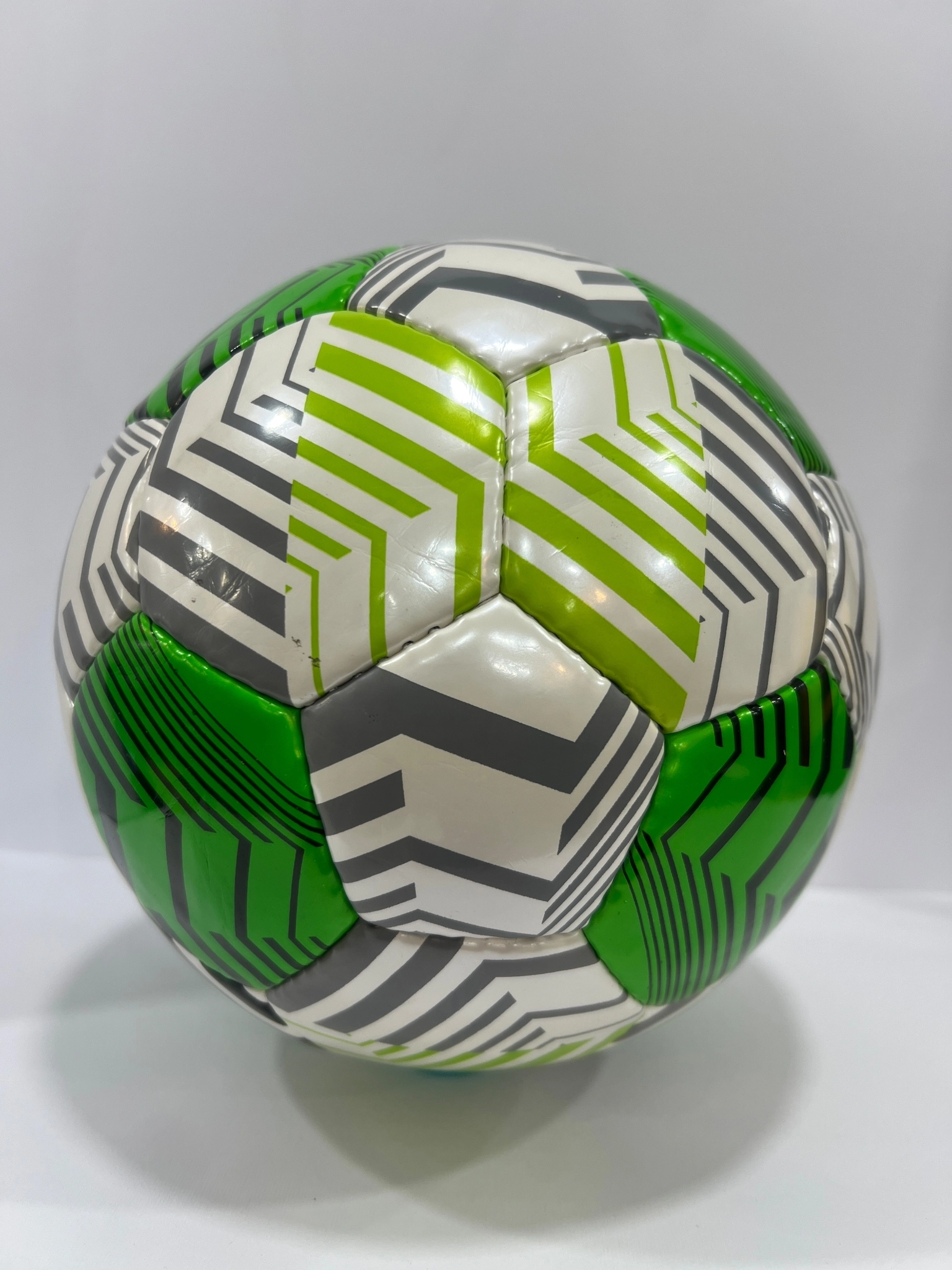 2. **جنس**: رویه توپ از چرم مصنوعی PU است که از 32 تیکه تشکیل شده و سطح آن براق است.