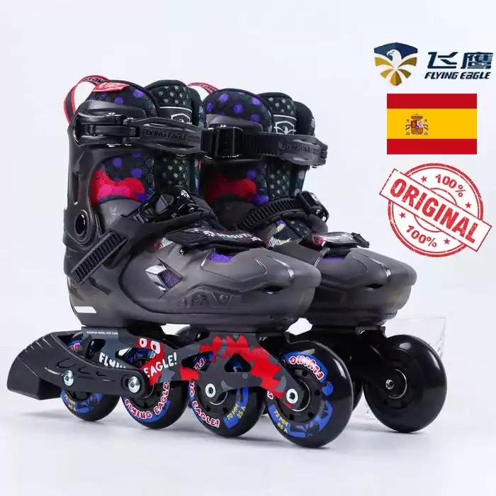 بوت استفاده شده برای اسکیت کفشی فلایینگ ایگل S8 از جنس پلی پریلین بوده که دارای استحکام مناسبی میباشد. بوت این اسکیت جزو بوتهای هارد با کیفیت بازار میباشد. از این رو به خوبی میتواند از پای فرزند شما محافظت کند. این اسکیت در سایز 37 تا 41 تولید شده است و قابل تنظیم است. اسکیت بچگانه فلاییگ ایگل S8، در دو رنگ مشکی و صورتی و آبی تولید شده است و برای سلیقههای مختلف قابل استفاده است. در قسمت کناری بوت ، یک بر آمدگی تعبیه شده است که حکم ضربه گیر را داشته و از بوت در هنگام برخورد با زمین محافظت میکند. برای تنظیم اندازه بوت ، در این اسکیت از سه مکانیزم استفاده شده است : بند برای تنظیم قسمت پنجه پا ، مکانیز بست جغجغهای برای تنظیم مچ پا و بست قلاف دار برای تنظیم قسمت ساق پا. در قسمت بند بوت ، یک جفت محافظ بند تعبیه شده است که از پاره شدن بند در هنگام زمین خوردن جلوگیری میکند. بست ضامن دار جغجغهای استفاده شده برای قسمت مچ پا از نوع سه تکه بوده و دارای کیفیت بسیار بالایی میباشد. ضامن استفاده شده از جنس فلز بوده و بسیار مقاوم میباشد. در قسمت زیرین بست ، یک قطعه پشیبان قرار داده شده است که باعث پخش شدن فشار وارده میشود. وجود مکانیزم جغجغه ، باعث افزایش کارایی و همچنین تسریع در روند سفت کردن بست میشود.