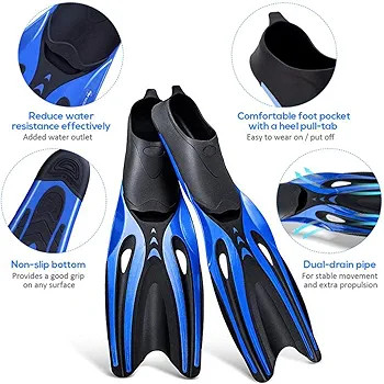 3. **طول تیغه**: فینهای با تیغههای بلندتر مناسب برای غواصی عمیق هستند، در حالی که فینهای با تیغههای کوتاهتر برای شنا در سطح آب مناسبترند.