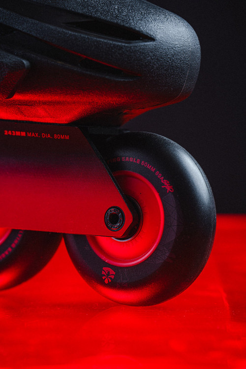 تیغه یا فریم اسکیت فلایینگ ایگل مدل F4+ Raven یکی از قسمت هایی می باشد که به طور کلی دگرگون شده است و علاوه بر طراحی ظاهری بسیار زیباتر و جذاب تر، مقاوم تر نیز شده است. این فریم چهار چرخ از جنس آلومینیوم 6000 است که در عین سبک بودن دارای استحکام بی نظیری می باشد. قطر چهار چرخ اسکیت فلاینگ ایگل اف 4 پلاس ریون سفید یکسان می باشند و این مدل تنها به صورت فلت عرضه می شود و قابلیت راکر شدن را ندارد. قطر چرخ های اسکیت فلاینگ ایگل اف 4 پلاس ریون سفید در تمامی سایز ها 80 میلی متر می باشد. این چرخ ها مدل Solid Rebound SHR برند فلایینگ ایگل می اشند که دارای سختی 85A هستند. جوراب داخلی یا لاینر Flying Eagle F4+ Raven Sand نسبت به مدل قبلی خود بسیار ضخیم تر و نرم تر شده است که حس سواری بی نظیری را برای رایدر ها به ارمغان می آورد. استفاده از پارچه مش توری شکل در دوخت این لاینر باعث شده است که علاوه بر ضخامت مطلوب و راحتی بسیار بالا جریان هوا نیز به راحتی از آن عبور نماید و در روز های گرم تابستان تعریق پاها به حداق برسد.