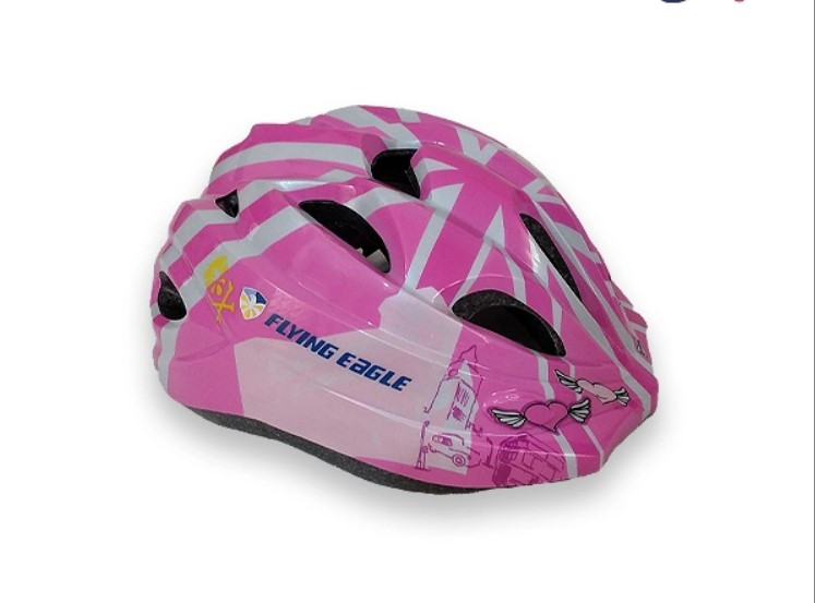 کلاه ایمنی اسکیت فلایینگ ایگل مدل V5 بچه گانه از برند معتبر flying eagle می باشد که در سه رنگ بندی صورتی ، مشکی قرمز و آبی دخترانه و پسرانه مناسب برای رده سنی کودکان تا نوجوانان با طراحی دلنشین تولید شده که طرح رویه کلاه شبیه به پرچم انگلیس می باشد. در پشت این کلاه ایمنی گیره رگلاژ دار متصل شده که محکم کننده کلاه بوده و می توان سایز آن را بر روی سر، کوچک یا بزرگتر کرد که به عنوان یک مزیت بسیار مهم به شمار میرود، این کلاه علاوه بر اسکیت، برای کسانی که در رشته دوچرخه سواری فعالیت می کنند نیز مناسب است.