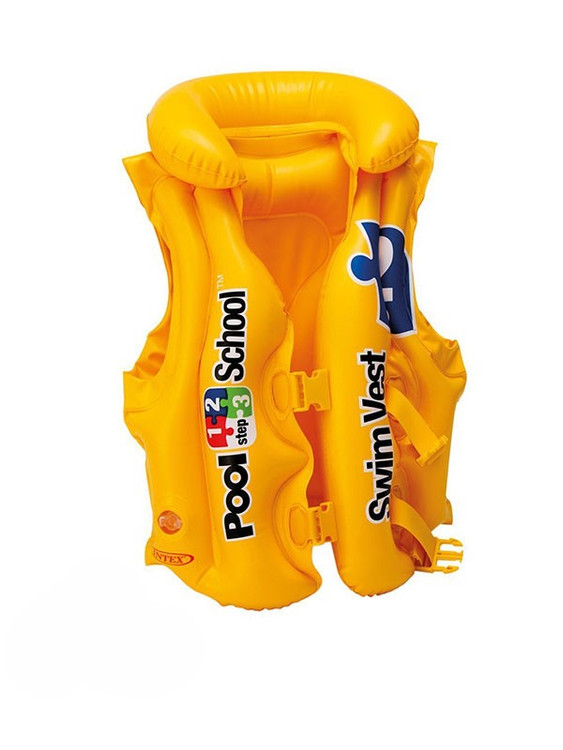 جلیقه نجات بادی زرد اینتکس مدل 58660 یکی دیگر از لوازم کمک آموزشی شنا برای کودکان در سنین پایین به شمار میرود. بدنه این جلیقه شنا به شکل کاملا استاندارد طراحی شده و به رنگ زرد تولید میشود. رنگ زرد به کار رفته در طراحی این محصول، به زیر نظر نگه داشتن و دیده شدن کودک و جلیقه نجاتش کمک میکند. این جلیقه شنا، کودکان را بر سطح آب شناور نگه میدارد و وسیله مناسبی برای ایجاد انگیزه برای کودکان و آموزش شنا به آنها است.