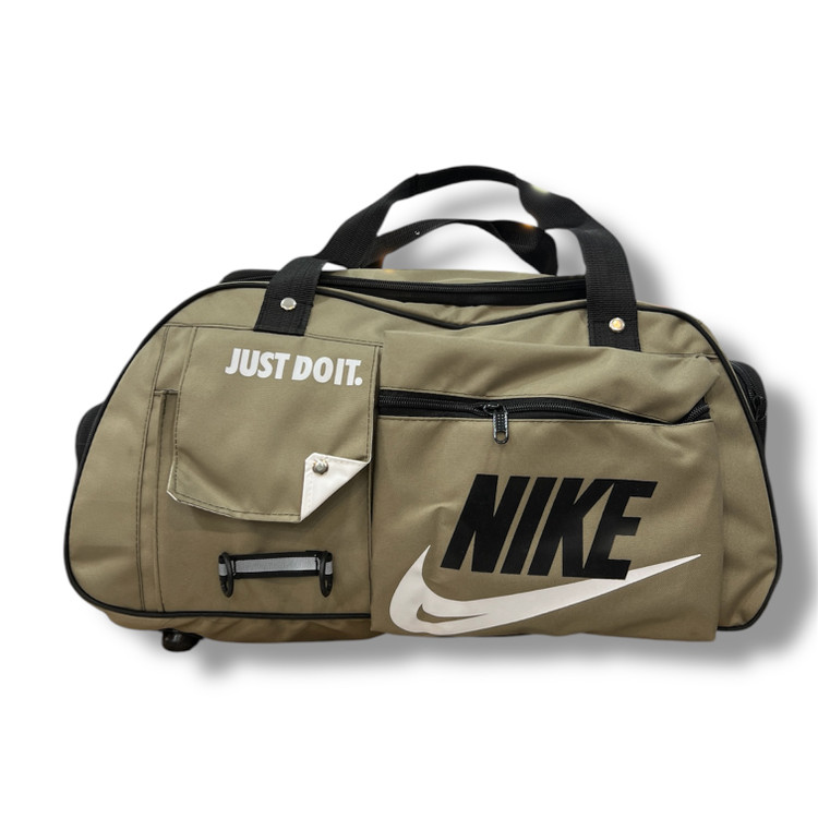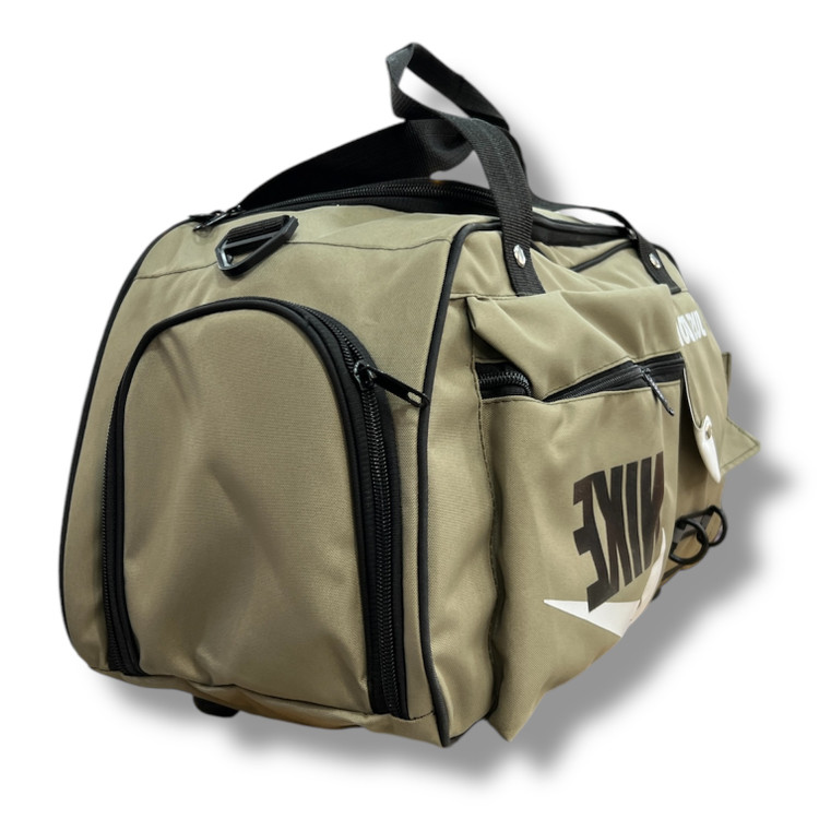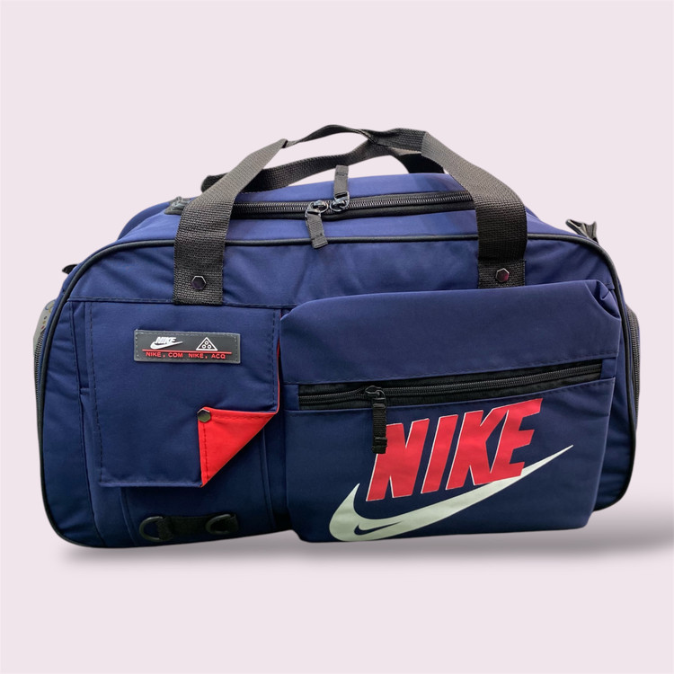 ساک ورزشی نایکی دوجیب جاکفشی دار زیپ واتر جنس این محصول از پارچه خلبانی مرغوب و داخل کار از آستر خارجی استفاده شده است. از مهمترین ویژگی این ساک می توان به جادار بودن آن اشاره کرد که به راحتی یک جفت کفش و لباس و تجهیزات ورزشی در آن قرار داده می شود. همچنین دارای دو بند دستی که توسط پانچ فلزی تقویت شده به هم وصل و یک بند دوشی قابل تنظیم که به راحتی قابل حمل می شود.