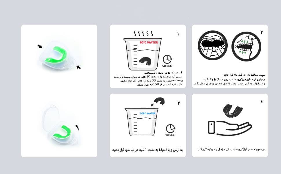 1. آب در یک ظرف ریخته و بجوشانید.سپس آب جوشیده را به مدت 30 ثانیه در دمای محیط قرار داده و بعد محافظ را به مدت 50 ثانیه در داخل آب قراردهید.دقت کنید که بیش از 50 ثانیه طول نکشد.