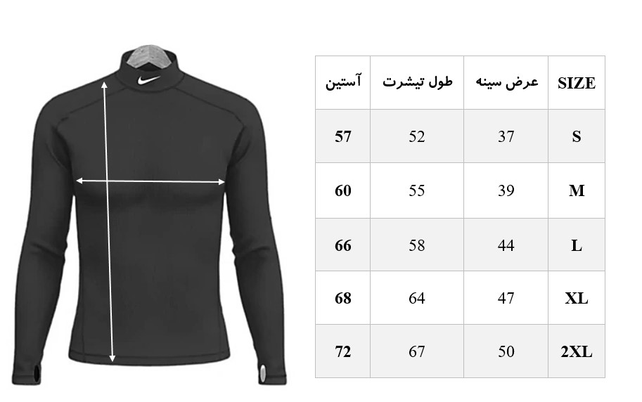 تیشرت استین بلند استرج فینگردار نایک و ال اسپرت