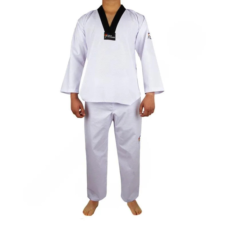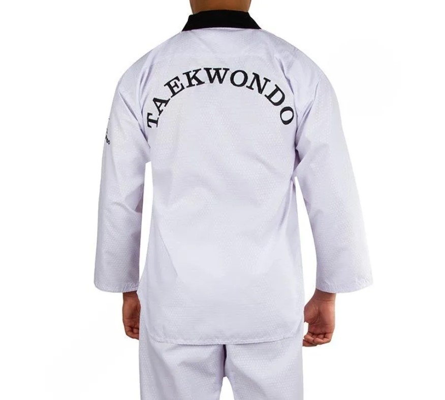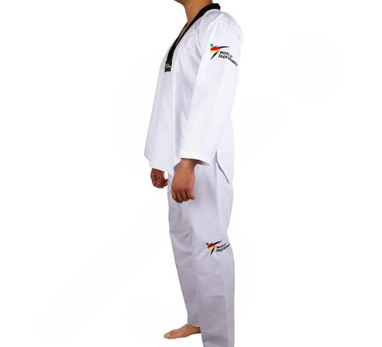 همانطور که برای موفقیت در هر کاری شما نیاز به یک سری لوازم و تجهیزات دارید برای ورزش تکواندو نیز به لباس مخصوص نیاز خواهید داشت. لباس تکواندو ، از پارچه زنبوری و زیبا، خنک و دارای درصد بالای نخ تهیه شده است. همچنین دارای گلدوزی استثنایی در پیراهن و شلوار می باشد و به طور کلی یک یونیفورم کاملاً منحصر به فرد جهت مبارزه و پومسه را در اختیار شما قرار می دهد. پوشیدن این لباس تکواندو آزادی حرکت بالایی را برای ورزشکار فراهم می کند و در نتیجه سرعت عمل را بالا می برد. وزن بسیار سبک و لطافت آن موجب احساس راحتی در هنگام مبارزه می شود. این لباس تکواندو دارای طراحی جلوبسته است و دوخت و تنخور فوق العاده ای دارد.