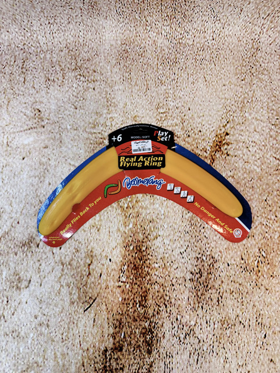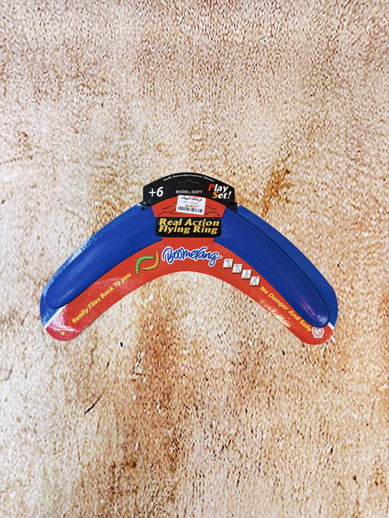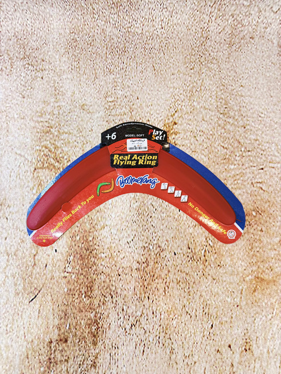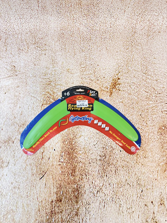 این مدل از بومرنگ از پلاستیک فشردهی سبک و مقاوم ساخته شده و طراحی خمیدهی دقیق آن باعث میشود پس از پرتاب، در مسیر بازگشت قرار گرفته و به سمت فرد پرتابکننده بازگردد.