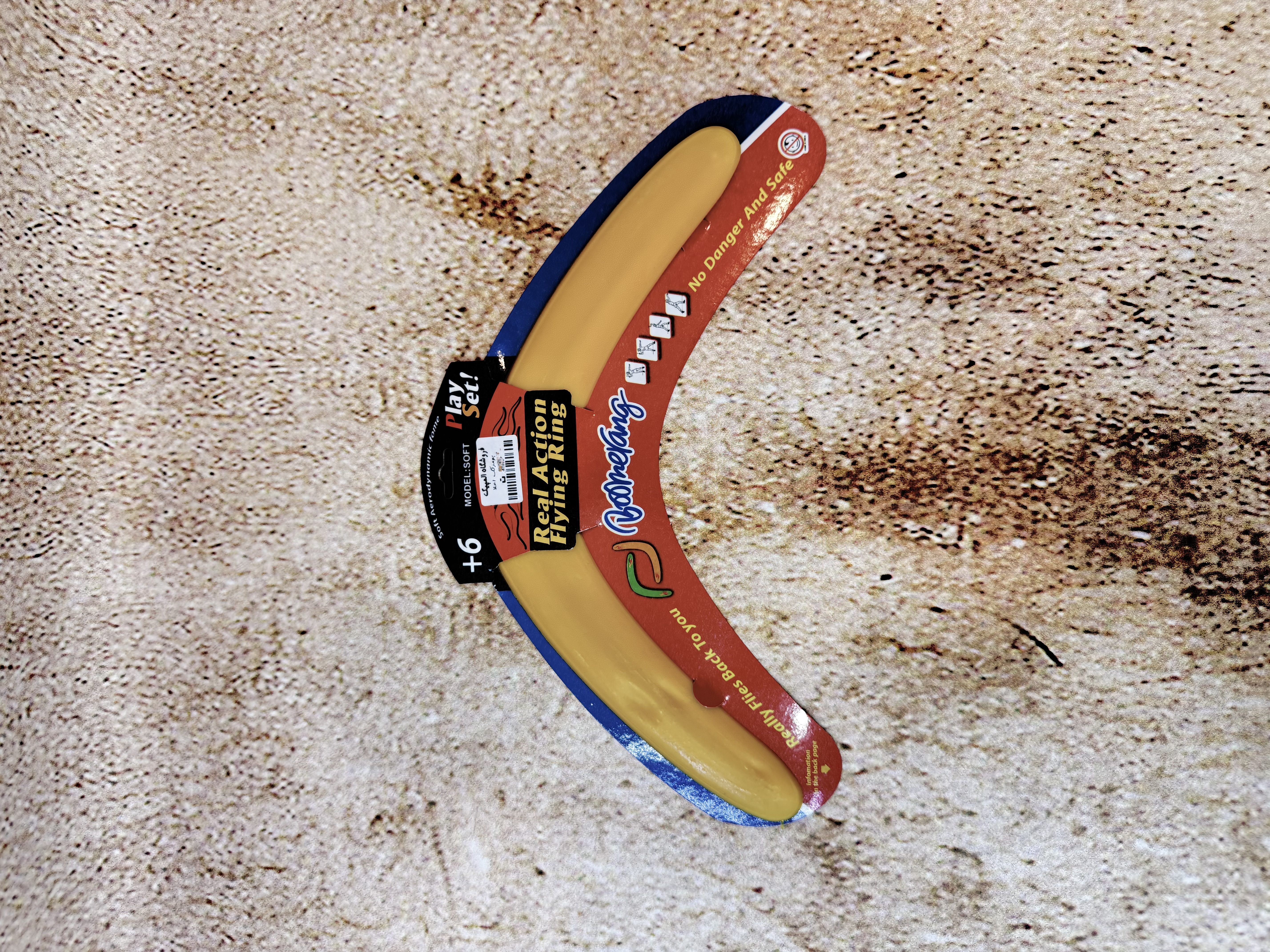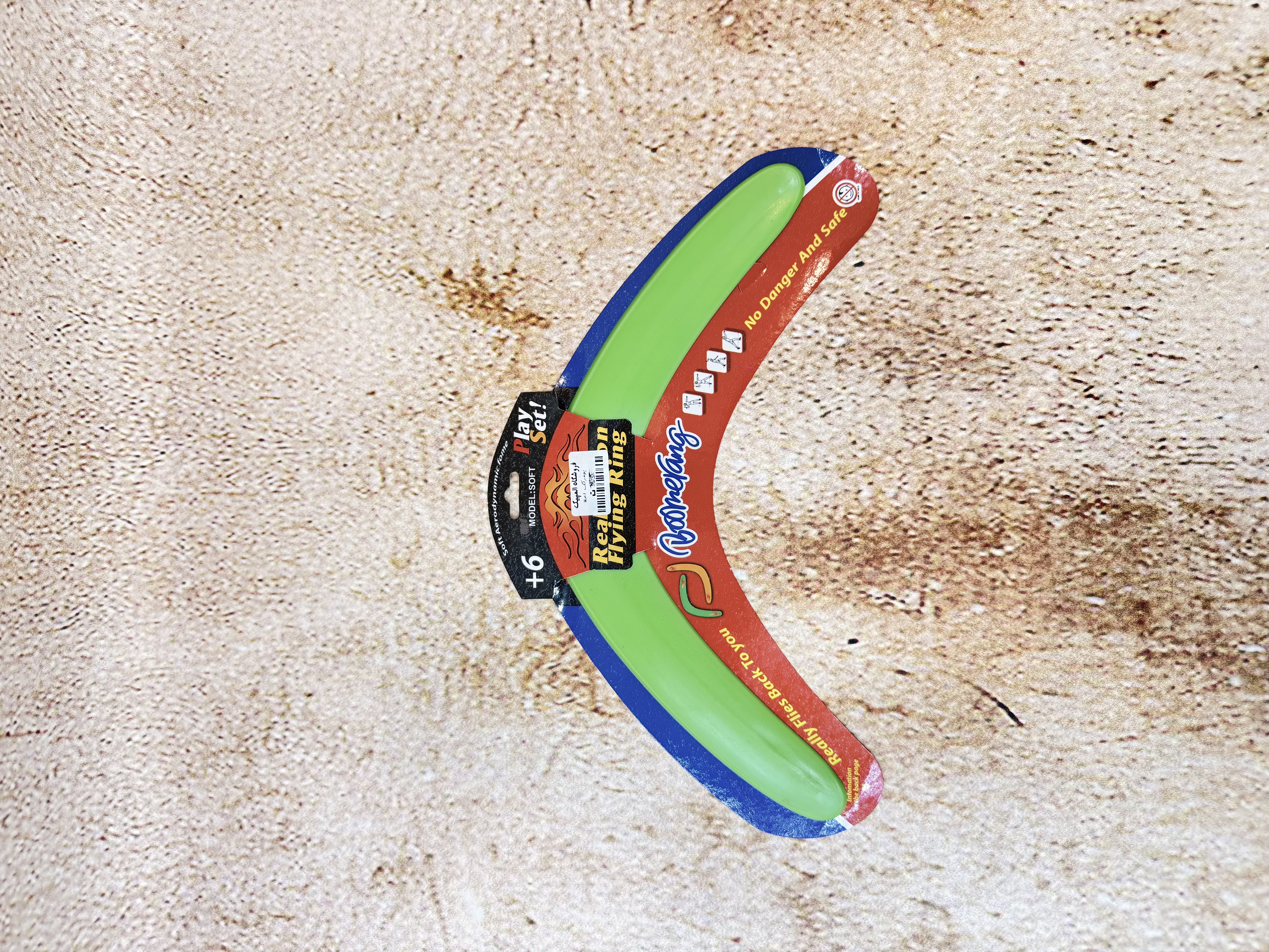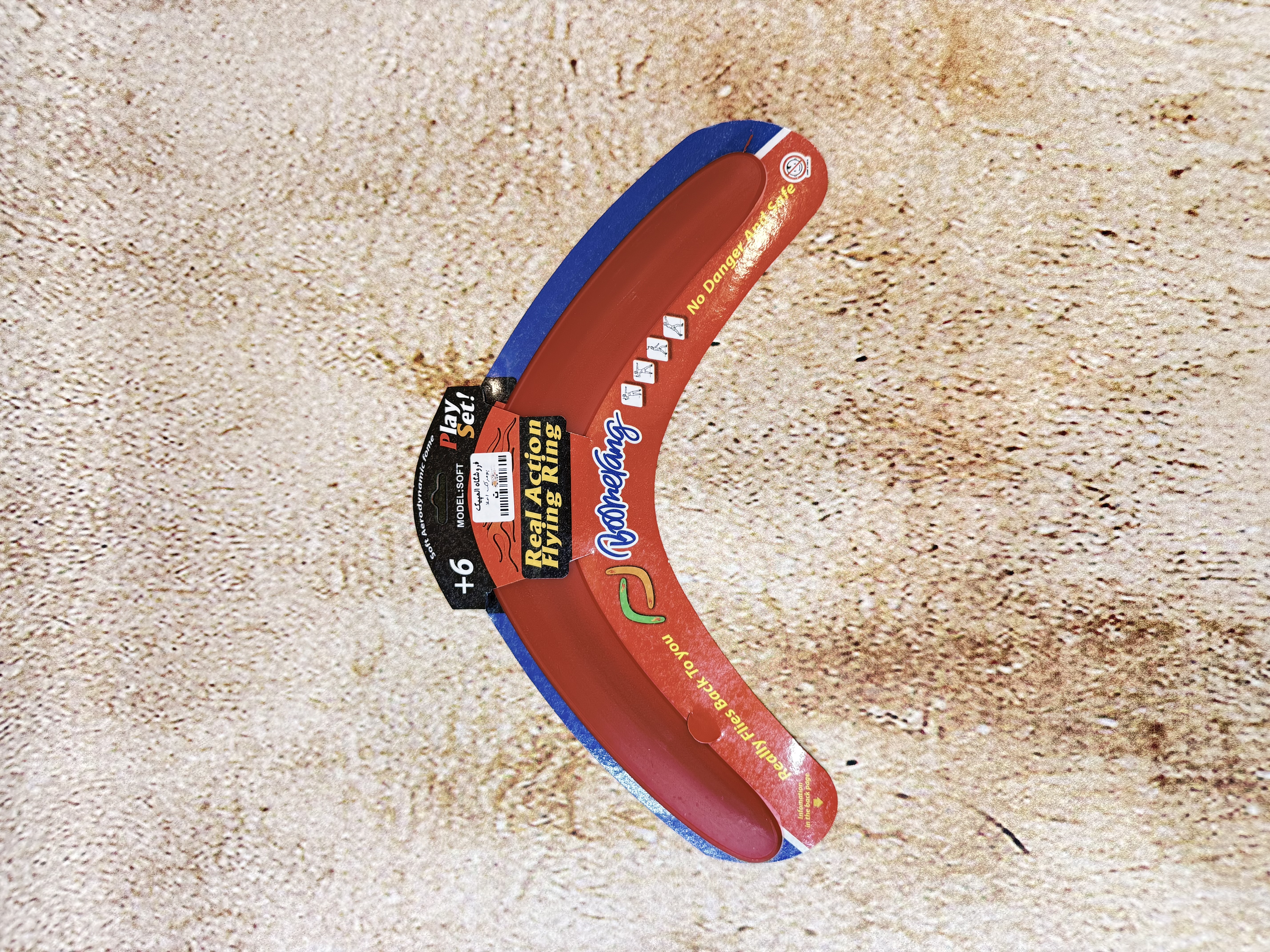 این مدل از بومرنگ از پلاستیک فشردهی سبک و مقاوم ساخته شده و طراحی خمیدهی دقیق آن باعث میشود پس از پرتاب، در مسیر بازگشت قرار گرفته و به سمت فرد پرتابکننده بازگردد.