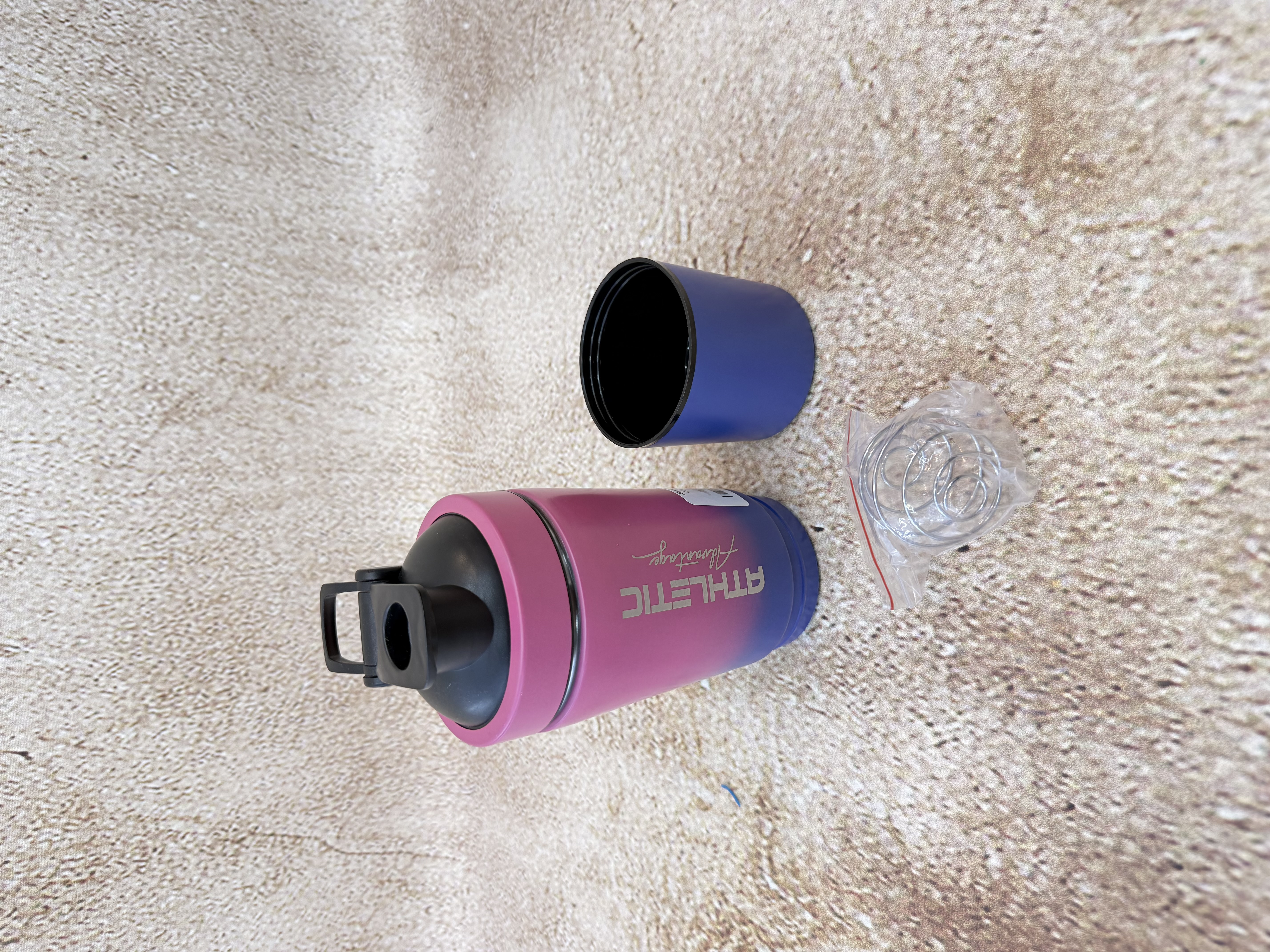 طراحی دو قسمتی این قمقمه ورزشی فلزی، یک امتیاز بزرگ است. مخزن انتهایی فضای کافی برای یک یا دو اسکوپ پودر پروتئین را دارد. رزوه (دندانه) های این بخش بسیار دقیق تراش خوردهاند تا هم به راحتی باز و بسته شوند و هم در حین حرکت در کیف ورزشی از هم جدا نشوند.
