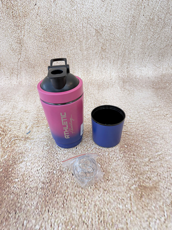 این شیکر جذاب با ترکیب رنگی گرادیانت (طیف رنگی خیرهکننده صورتی به بنفش/آبی) نه تنها ظاهری بسیار اسپرت و مدرن دارد، بلکه به دلیل استفاده از متریال فلزی در بدنه، مشکل همیشگی شیکرهای پلاستیکی یعنی «بو گرفتن پس از مدتی استفاده» را به طور کامل حل کرده است. ساختار فلزی این محصول به شما کمک میکند تا دمای نوشیدنی خنک خود را در طول تمرین بهتر حفظ کنید.